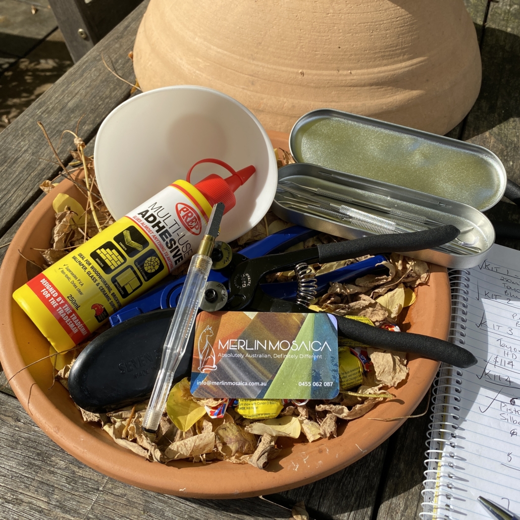 This is a comprehensive kit for those starting out in glass mosaics. It contains tools designed for working with glass: