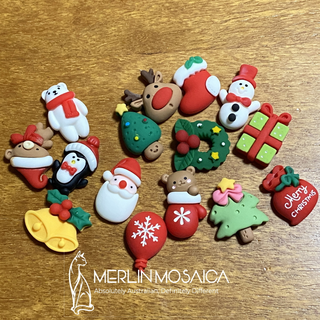 15 little flat-backed resin charms, just in time to get your Christmas pieces ready.