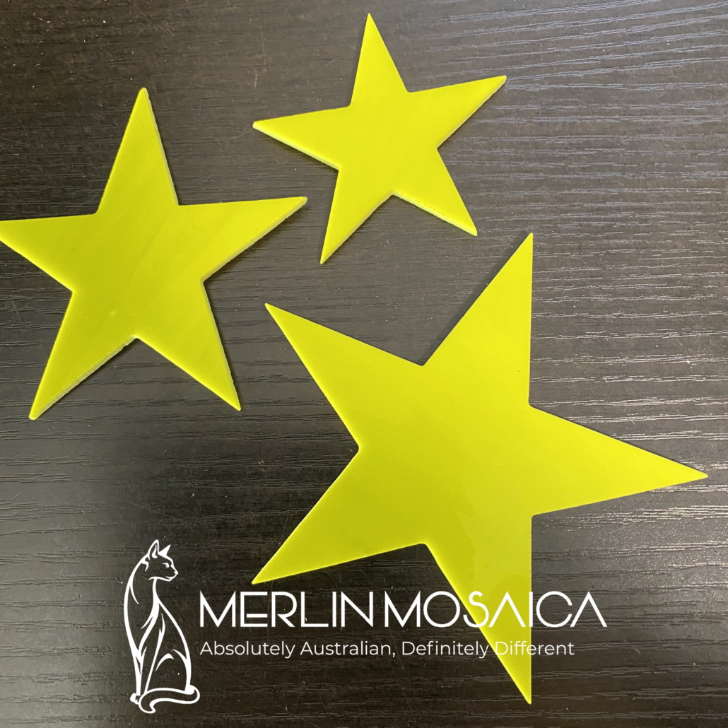 A set of stars cut from translucent Yellow Stained Glass – non-Fusible