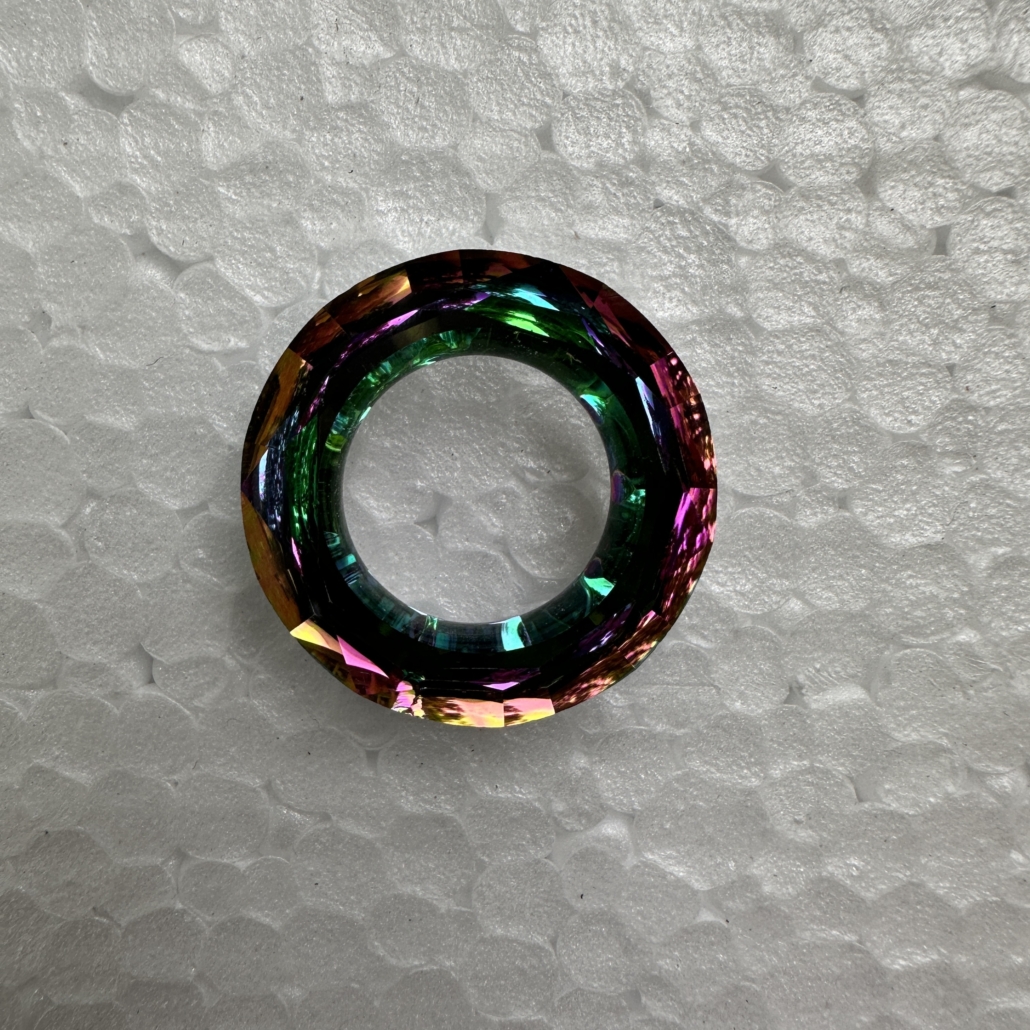 This incredible piece is laser honed. As it hangs and move, it will paint your garden with light!
