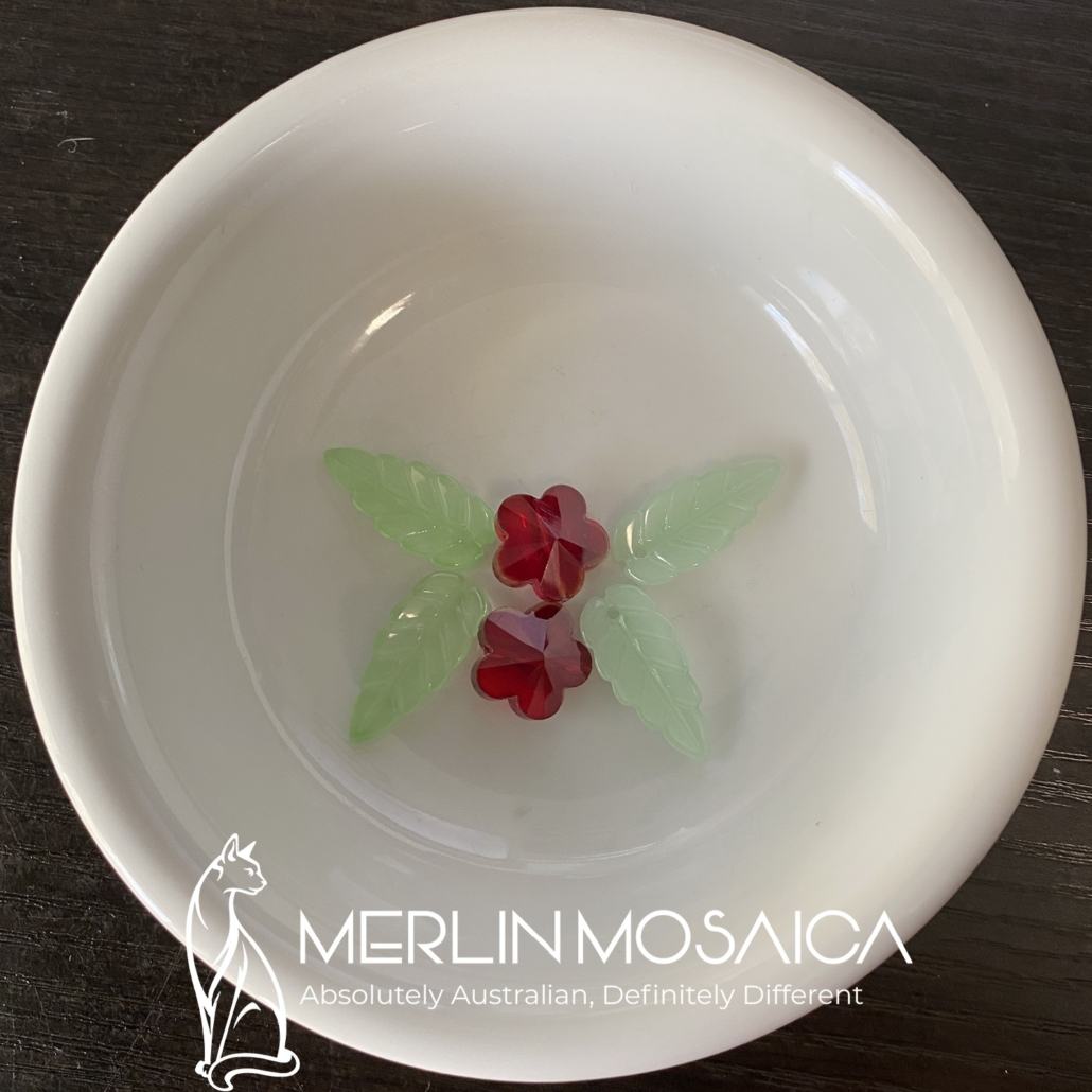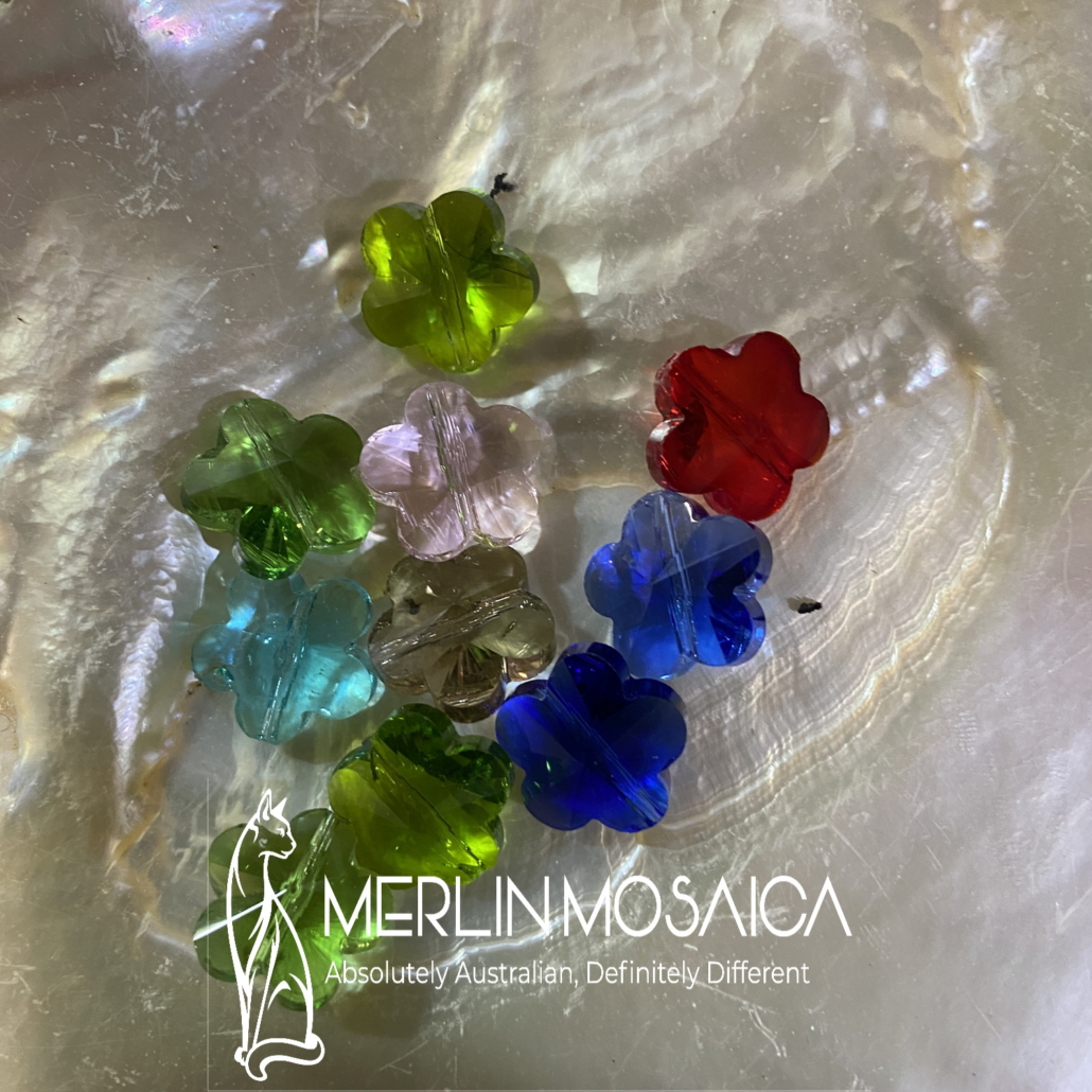 Gorgeous cut glass beads in the shape of a flower. Why not combine them with our lovely glass leaves – clear or cloudy?