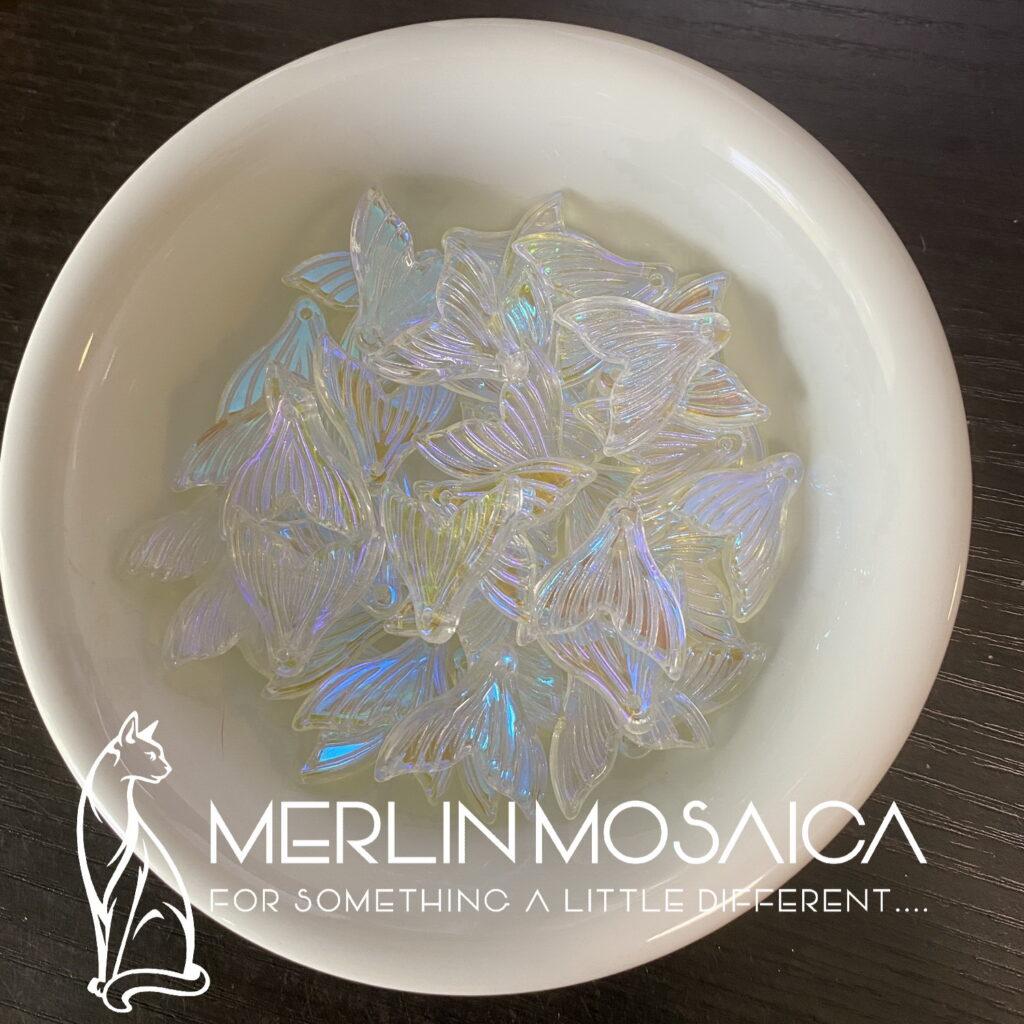 Cute little fish tail beads. Can be cut in half to make butterfly, insect or fairy wings.