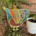 This mixed media piece is a retro sixties-styled interpretation of a colourful peacock.