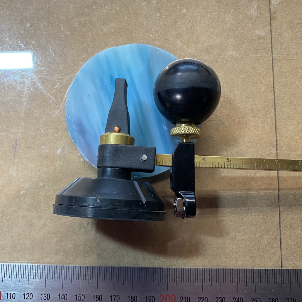 The actual distance from the centre of the suction cap to the cutter head will be 15cm in this case (half the diameter) - Use the suction cap to affix the cutter to the glass