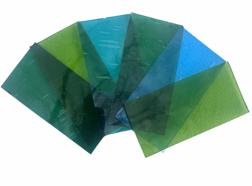 This is wonderful Mouth Blown Stained glass produced by Jaslo Glassworks, in Poland, using age-old traditional methods. The resultant product is extremely flat, clear and smooth, but containing elongated bubbles, stretched during the blowing process. It is fabulous for Glass on Glass.