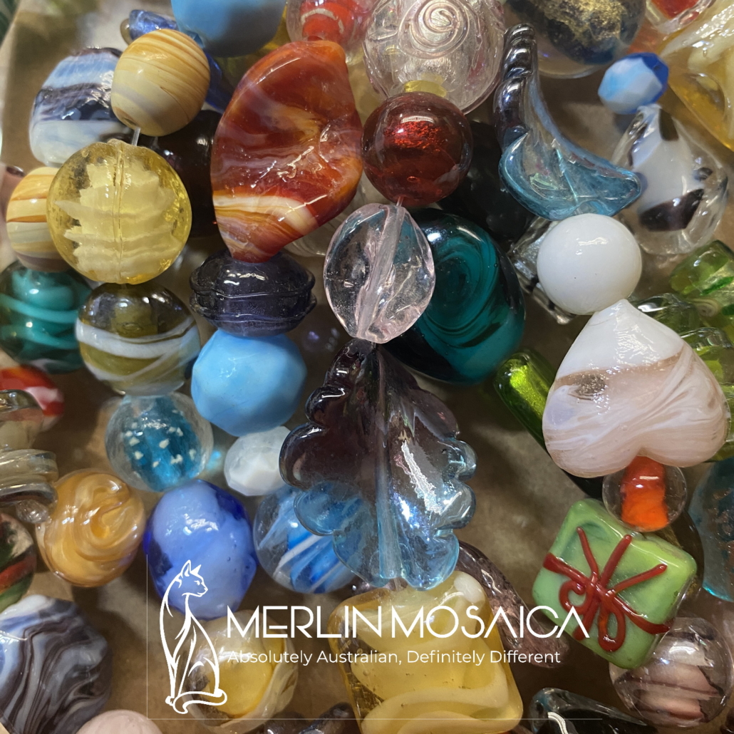 - Approx. 40 grams of mixed lamp work beads in varying sizes.