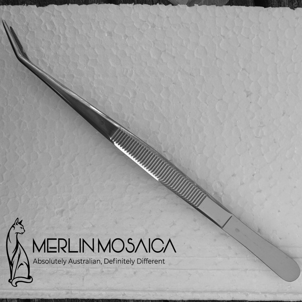 Stainless steel tweezers, can be used for any project, small or large, to easily place the tesserae and move them around. A must-have tool in any mosaic kit.