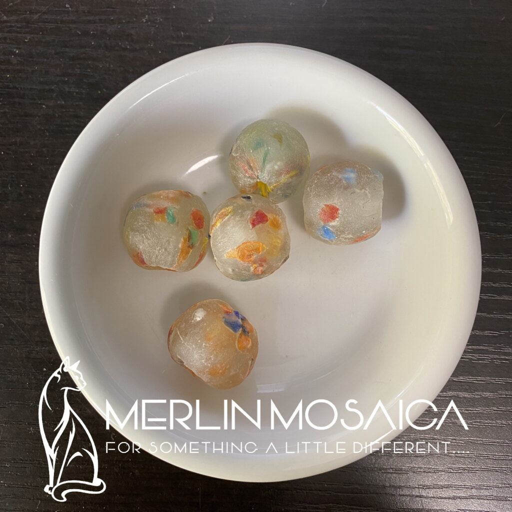 - Mix of colours in a clear ground. Due to the rough finish, they appear cloudy, not clear.