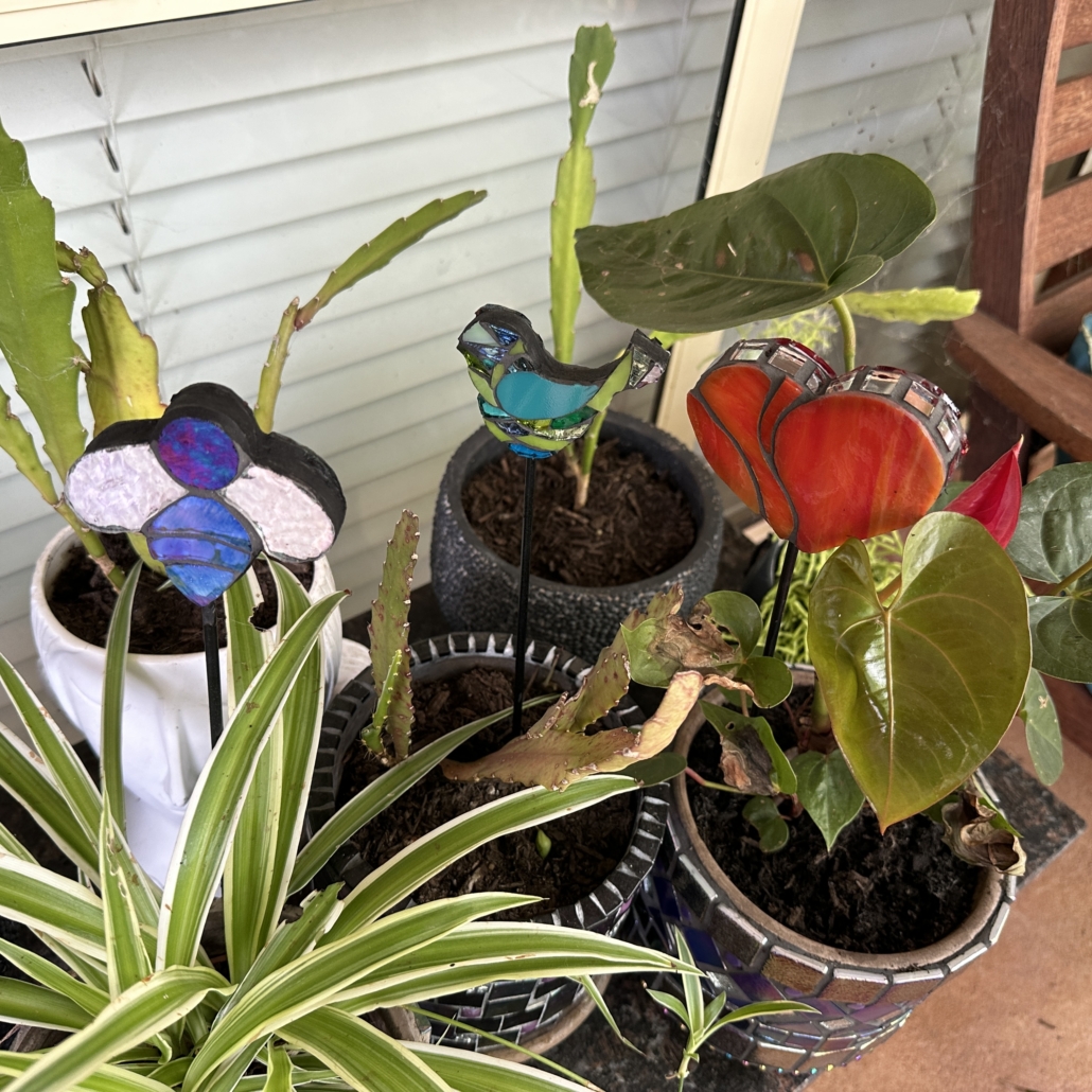 Pop these happy campers into your pots – grab a set of 3 pieces. Choose 3 the same, or 3 different ones – whatever you want! Use stained glass, tile or even ceramic picassiette!