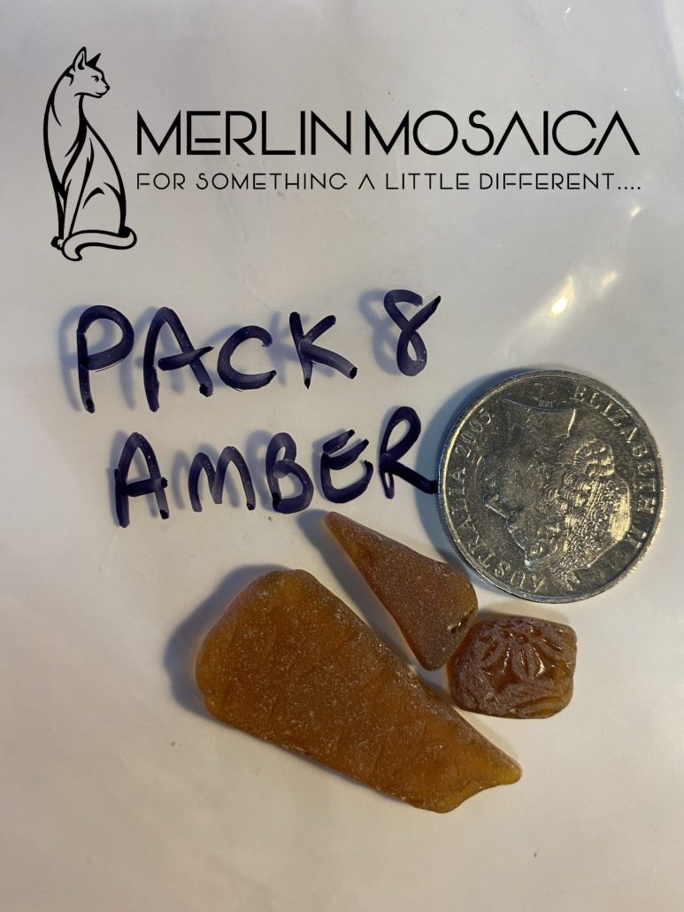 Amber coloured Embossed Beach Glass.