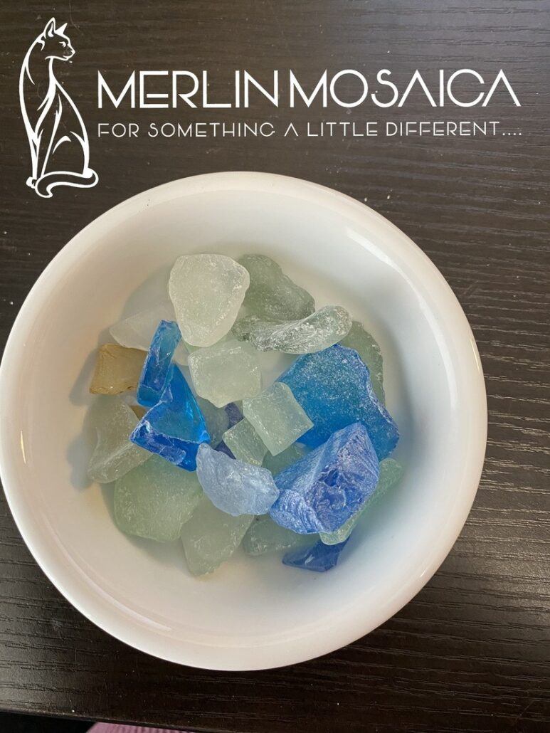 Pieces of glass that have been tumbled to resemble genuine sea glass. Colours are a random mix of white, clear, light aqua/turquoise, light green, bright teal blue, peach and amber glass…