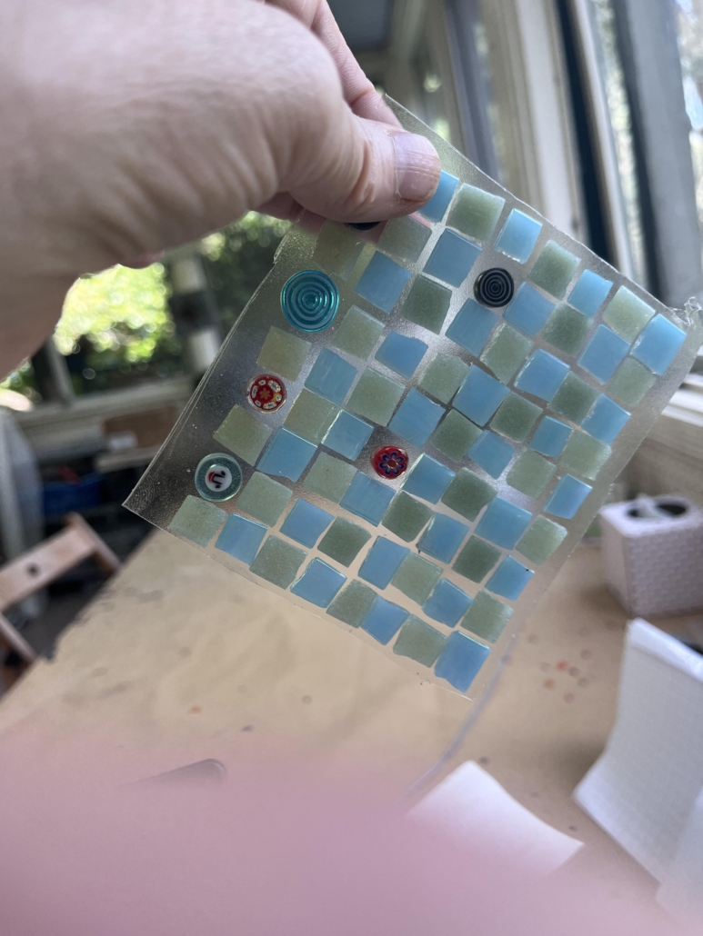 - Dry lay out your tesserae over your “cartoon” or free-hand design.