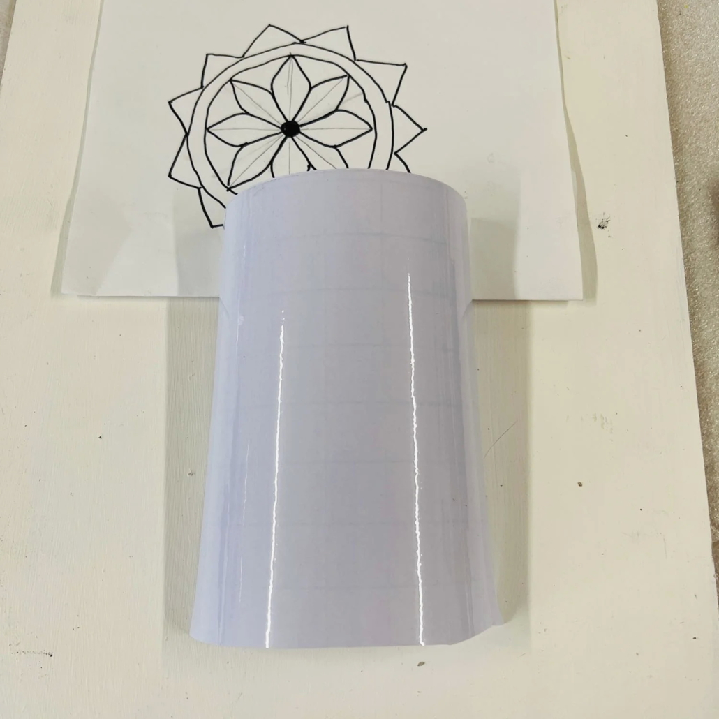 - Peel the film off your mosaic, rolling around a pencil at a 45deg angle