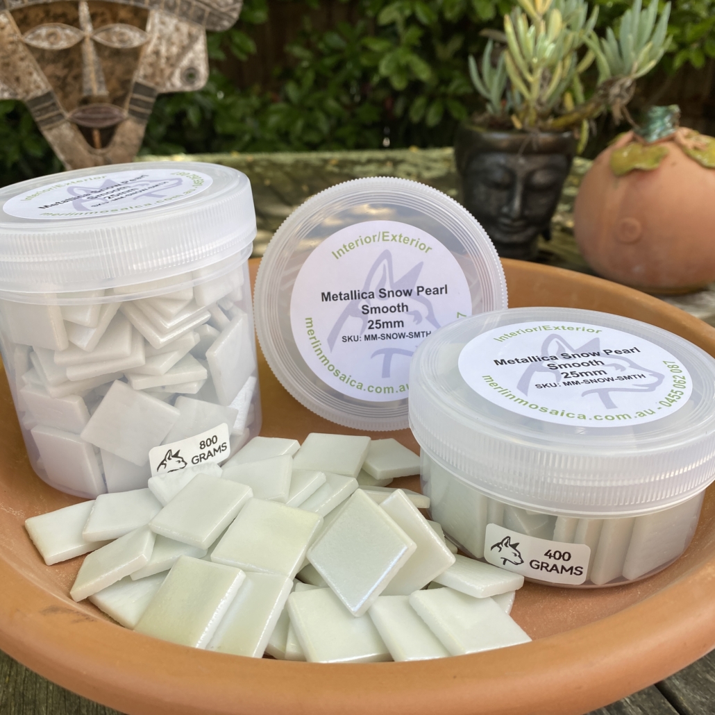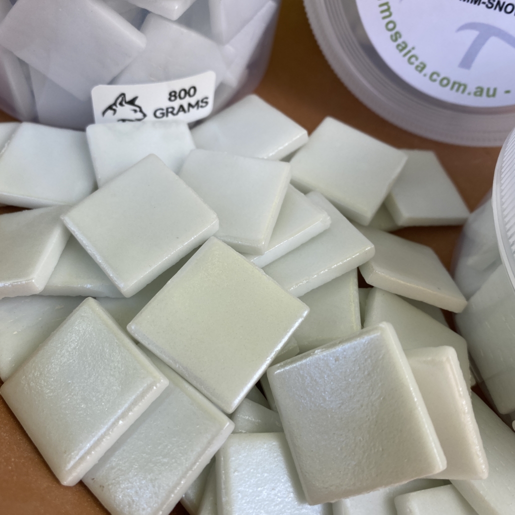 Matte finished white tile. Use as is, or cut them easily with your favourite wheeled nippers.Â