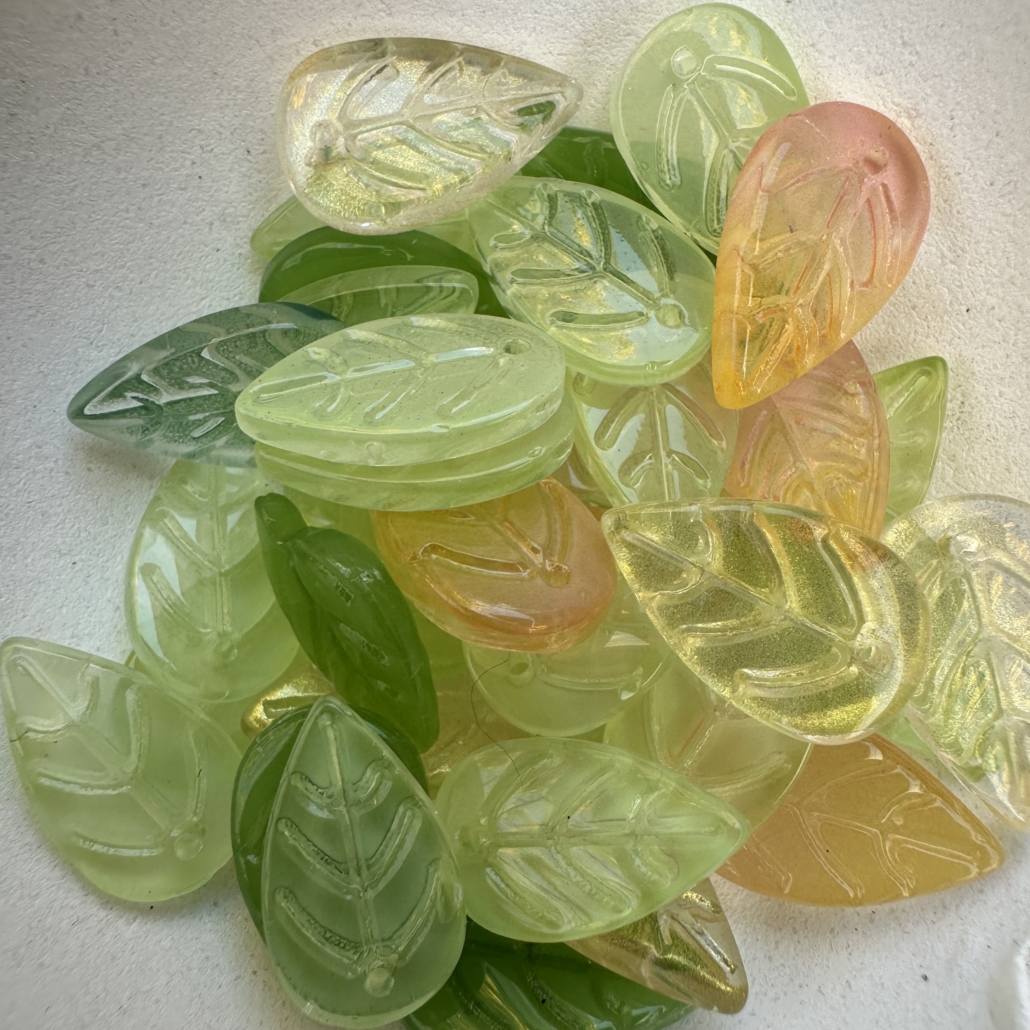 Gorgeous iridised Glass Leaves, with flat faces. A beautiful way to add colour to your mosaic.