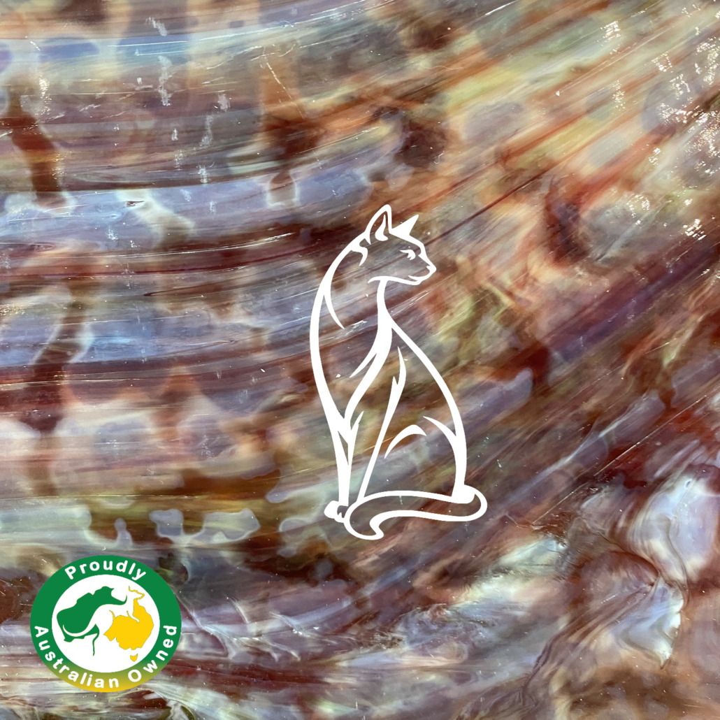 Designed for stained glass and mosaics, ring mottles create the impression of dappled sunlight on petals, leaves, grass, or water. Vision Symphony Ring mottled glass is white glass (opal) mixed with one or more other colours to create a variegated, multi-coloured sheet. Light transmission varies with composition.