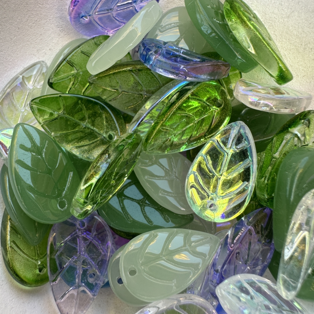 Gorgeous iridised Glass Leaves, with flat faces. A beautiful way to add colour to your mosaic.